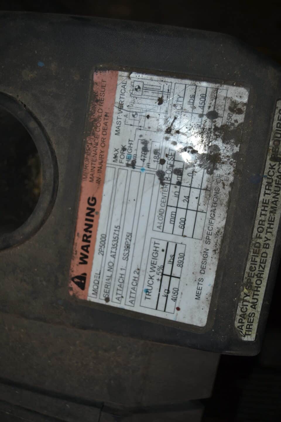 -CAT MODEL 2 P 5000 WAREHOUSE FORKLIFT W/PROPANE GAS ENGINE W/SIDE SHIFT SN#AT353715