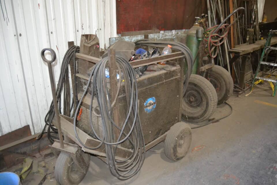 -BANDING CARTS, BANDING MITER SAW, HARD TOOLS, TOOLBOXES, PRESSURE WASHER, VISE, PARTS OF SHELVES, PARTS FOR MACHINE METAL CUTTING SAW, TORCH, GUAGES, AND MILLER WELDER