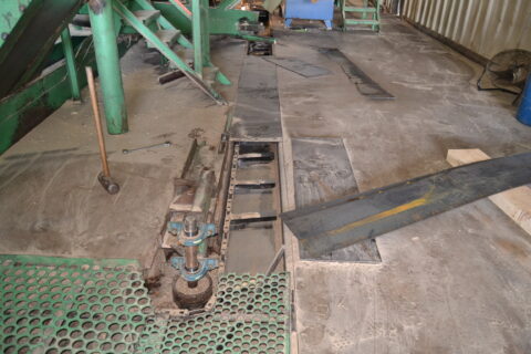 -MERCHANDISING CHOP SAW SYSTEM W/4 STRAND INFEED LOG DECK W/LOG TROUGH W/CHOP SAW W/OUTFEED LOG TROUGH W/MOTORS & DRIVES