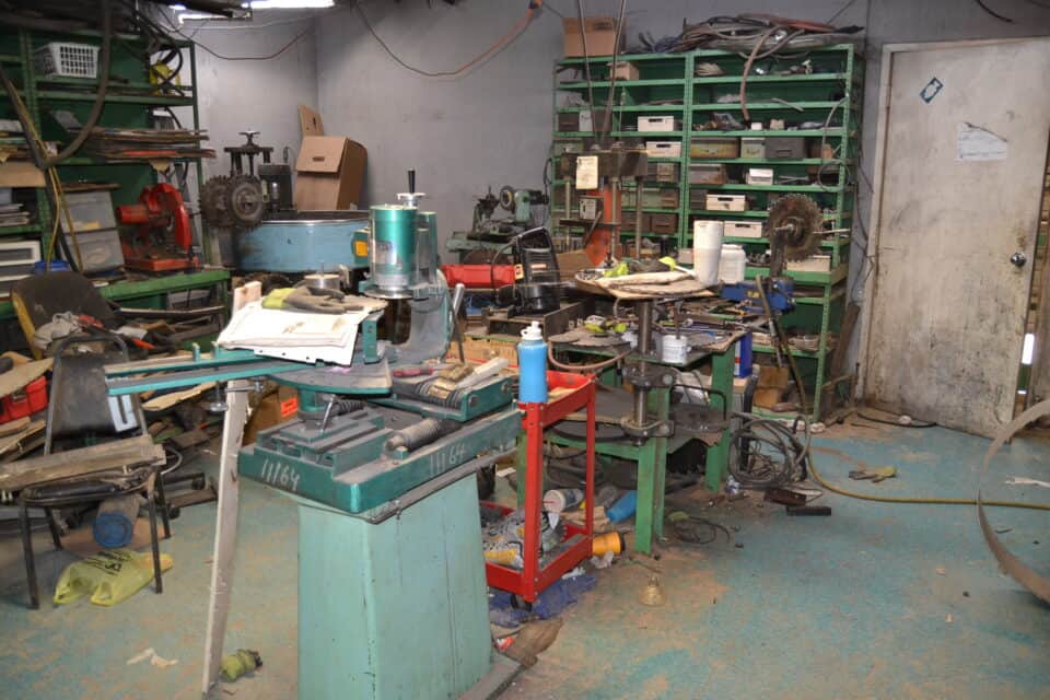 -MOTORS, GEAR DRIVES, PIPING, CHOP SAW, MILLING MACHINE, WELDER, CHAIN AND AIR COMPRESSOR