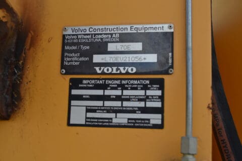 – VOLVO L70F ARTICULATING WHEEL LOADER W/FORKS W/CLAMP W/SLIP ON BUCKET W/ENCLOSED CAB SN#V21056