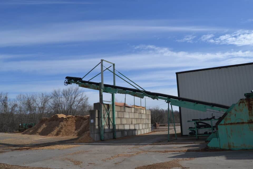 -CUSTOM BUILT CHIPPER SYSTEM W/INFEED BELT CONVEYOR W/5’X5’ CHIP SCREEN W/BELT CONVEYOR FEED W/DRIVE
